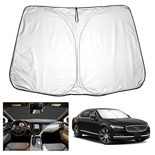 YEE PIN Parasoll bil kompatibel med Volvo S90 Sedan V90 Touring 2021 2022+, vikbar bil solskydd vindruta UV damm skydd reflekterande solskydd