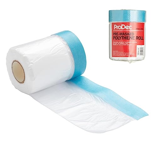 ProDec 30 cm x 25 m förmaskerad rulle med dammskydd av polyeten, dammtät och vattentät Idealisk för att täcka och skydda golv och möbler vid målning och dekorering