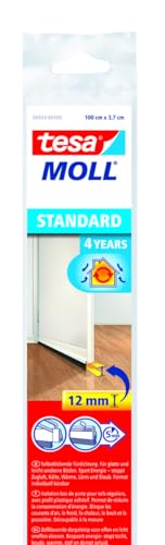 tesa INSULATION tätningslist för släta golv - Dörrtätning i rätt storlek för att skydda mot drag - Vit - 95 cm x 25 mm, kan skäras till