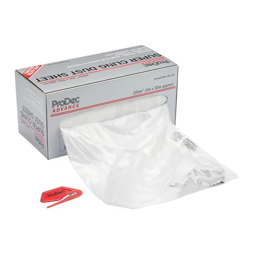 ProDec Advance 200 kvm (4 m x 50 m) Super Cling Polythene Dust Sheet Roll Statiskt laddad för osynligt fäste utan tejpning, perfekt för att skydda golv, möbler och väggar vid målning och dekorering
