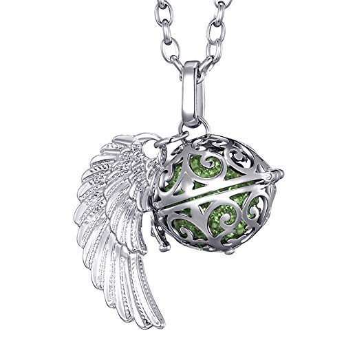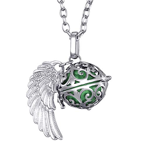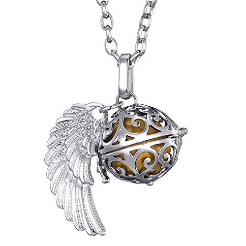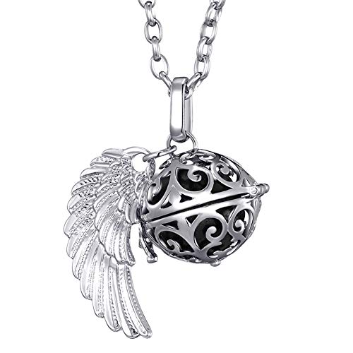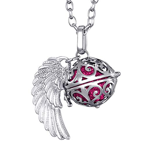 Morella dam skyddsängel halsband i rostfritt stål 70 cm med hänge Änglavingar och ljudkula zirkonia i smyckespåse