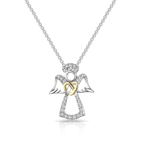 Skyddsängel vingar halsband sterling silver hänge med gnistrande kubisk zirkon smycken för kvinnor flickor, Sterlingsilver, Kubisk zirkonia
