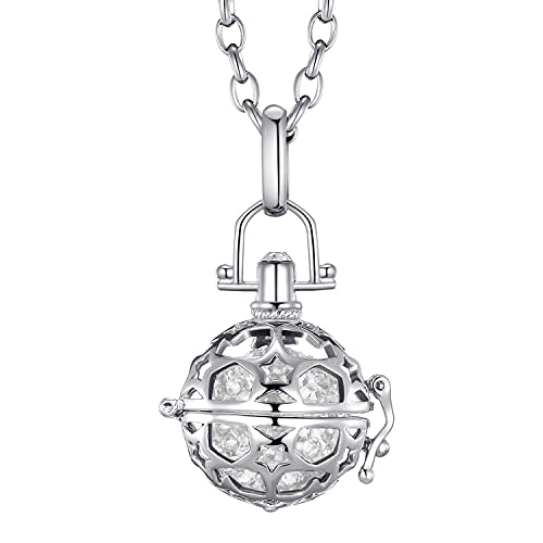 Morella dam skyddsängel halsband rostfritt stål 70 cm med hänge stjärnor och klangboll zirkonia i smyckespåse, Metall, Kubisk zirkonia