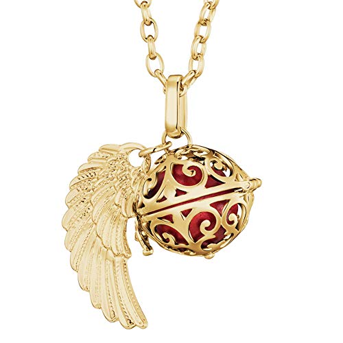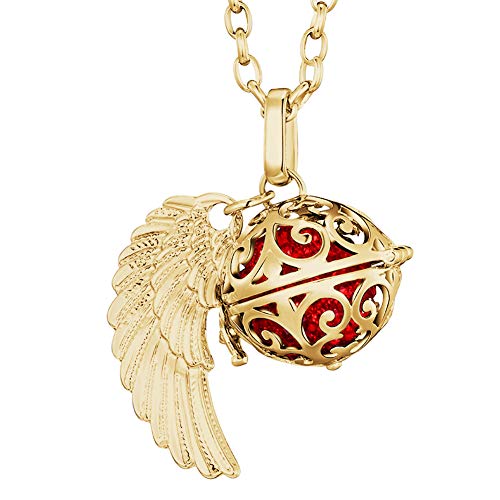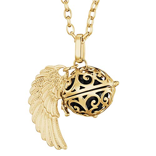 Morella dam skyddsängel halsband guld i rostfritt stål 70 cm med hänge Änglavingar och ljudkula zirkonia i smyckespåse