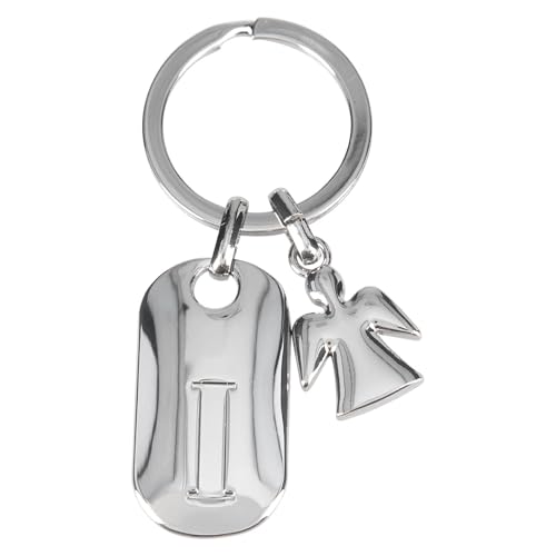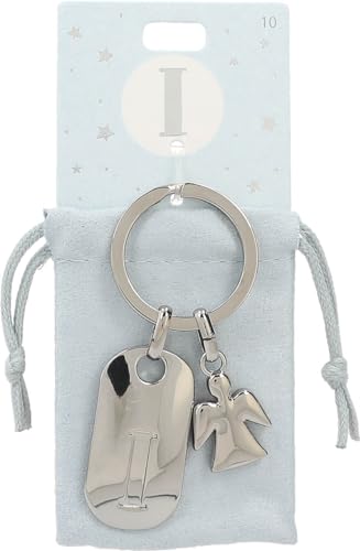 Depesche 11800-010 silvernyckelring med bokstav I och skyddsängel, zinklegering, inkl. färgad sammetspåse, silver, Einheitsgröße