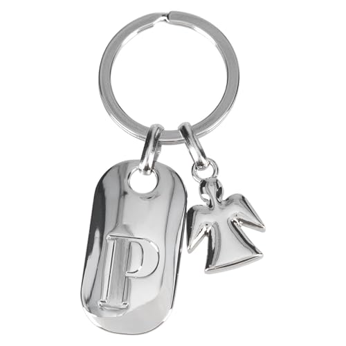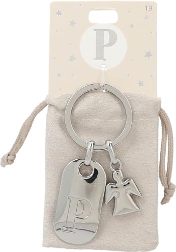 Depesche 11800-019 silvernyckelring med bokstav P och skyddsängel, zinklegering, inkl. färgad sammetspåse, silver, Einheitsgröße
