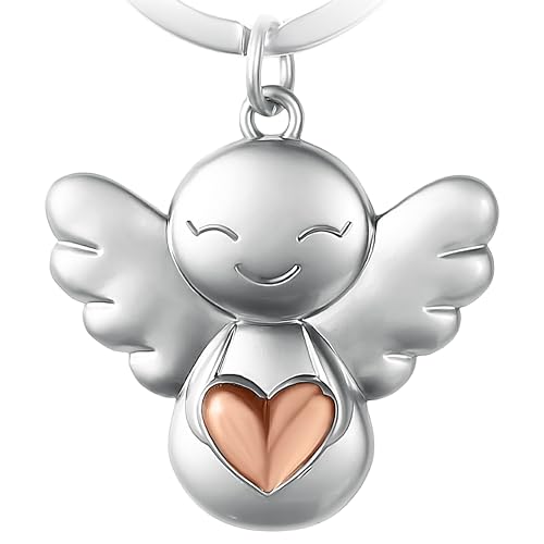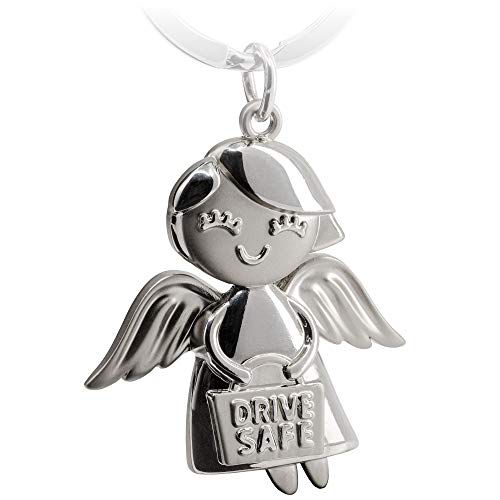 FABACH Skyddsängel nyckelring Emmy med gravering Drive Safe – söt ängel berlock av metall – present lyckobringare bil körkort – kör försiktigt nyckelring