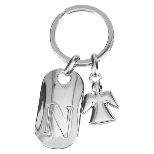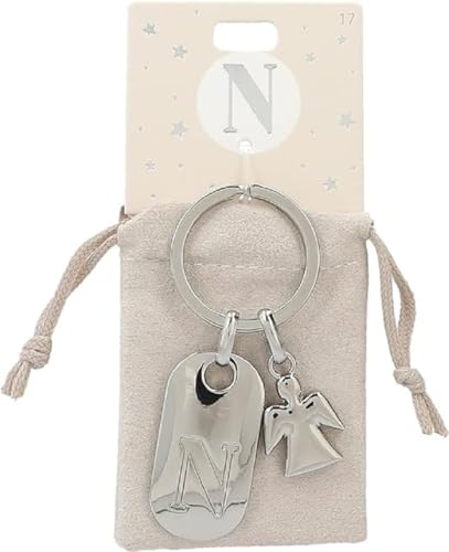 Depesche 11800-017 silvernyckelring med bokstav N och skyddsängel, zinklegering, inkl. färgad sammetspåse, silver, Einheitsgröße