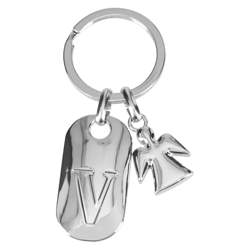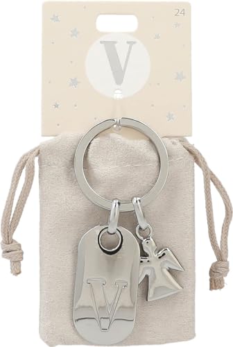 Depesche 11800-024 silvernyckelring med bokstav V och skyddsängel, zinklegering, inkl. färgad sammetspåse, silver, Einheitsgröße