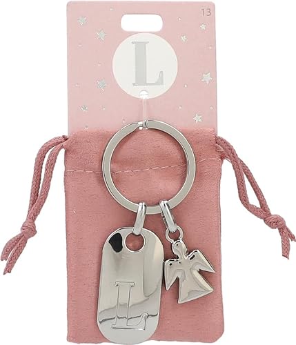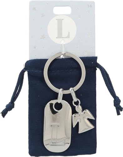 Depesche 11800-013 silvernyckelring med bokstav L och skyddsängel, zinklegering, inkl. färgad sammetspåse, silver, Einheitsgröße