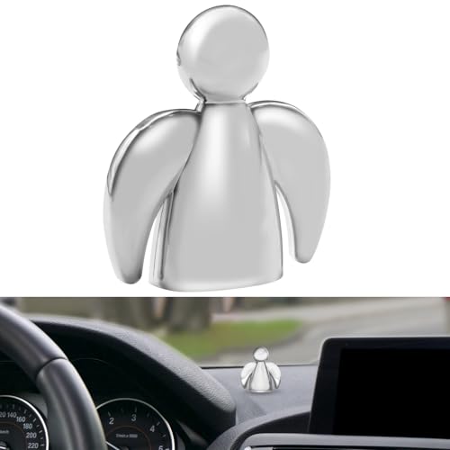 Anwlki Skyddsängel, bil, ängel, magneter, ornament, lyckobringare, gåva, bilförare, skyddshelgon, kom bra hem med magnet och 3 dubbelsidiga självhäftande klistermärken, 1 järnbit (ljus silver)