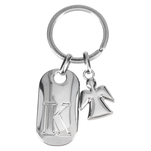 Depesche 11800-012 silvernyckelring med bokstaven K och skyddsängel, zinklegering, inkl. färgad sammetspåse, silver, Einheitsgröße