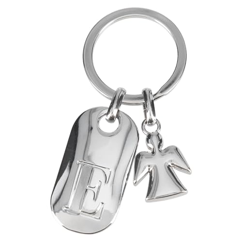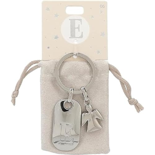 Depesche 11800-006 silvernyckelring med bokstav E och skyddsängel, zinklegering, inkl. färgad sammetspåse, silver, Einheitsgröße
