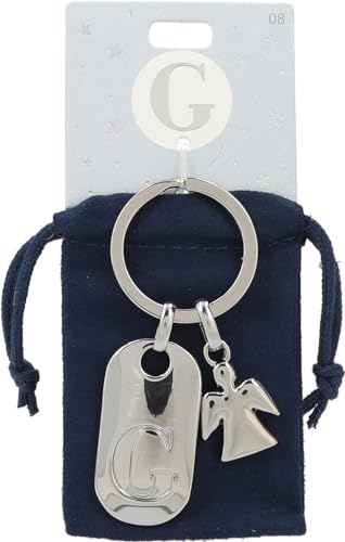 Depesche 11800-008 silvernyckelring med bokstav G och skyddsängel, zinklegering, inkl. färgad sammetspåse, silver, Einheitsgröße