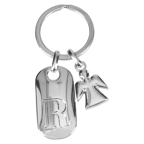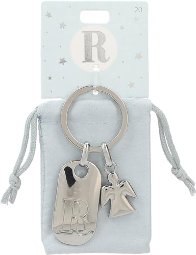 Depesche 11800-020 silvernyckelring med bokstaven R och skyddsängel, zinklegering, inkl. färgad sammetspåse, silver, Einheitsgröße