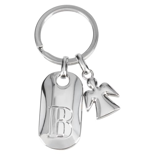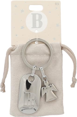 Depesche 11800-003 silvernyckelring med bokstav B och skyddsängel, zinklegering, inkl. färgad sammetspåse, silver, Einheitsgröße