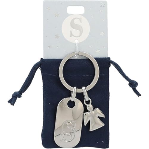 Depesche 11800-022 silvernyckelring med bokstav S och skyddsängel, zinklegering, inkl. färgad sammetspåse, silver, Einheitsgröße