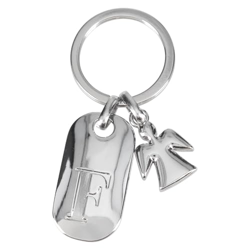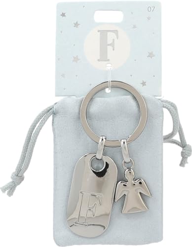 Depesche 11800-007 silvernyckelring med bokstav F och skyddsängel, zinklegering, inkl. färgad sammetspåse, silver, Einheitsgröße