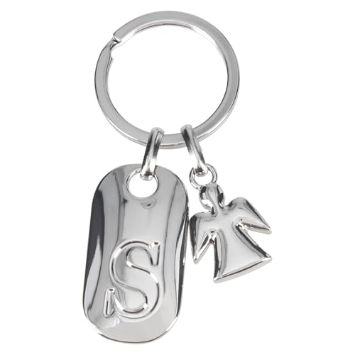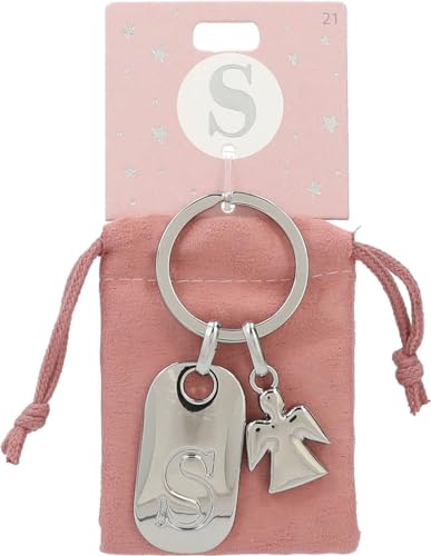 Depesche 11800-021 silvernyckelring med bokstav S och skyddsängel, zinklegering, inkl. färgad sammetspåse, silver, Einheitsgröße
