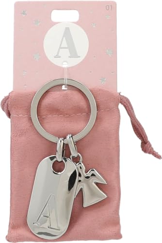 Depesche 11800-002 silvernyckelring med bokstav A och skyddsängel, zinklegering, inkl. färgad sammetspåse, silver, Einheitsgröße