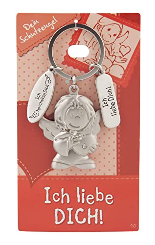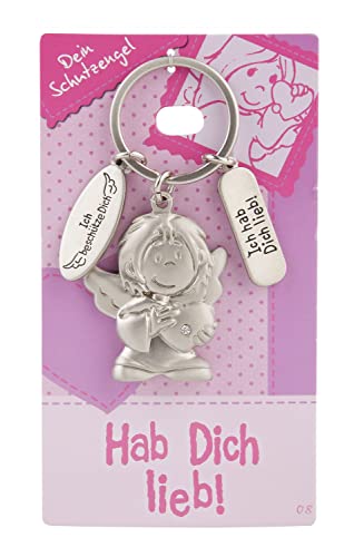 Depesche 7518-003 skyddsängel nyckelhänge av metall, lyckobringare med ängel, nyckelring och kärleksfullt budskap, som present till familjemedlemmar, vänner och bekanta