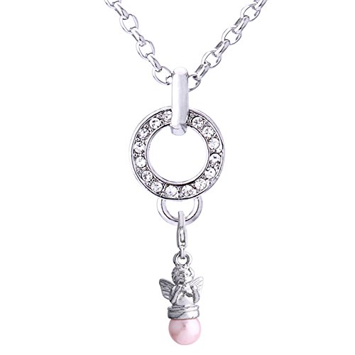 Finrezio 925 sterling silver skyddsängel hänge halsband för flickor silver hjärta halsband med kristall för present, present till dotter/fru/flickvän, Sterlingsilver, Ingen ädelsten