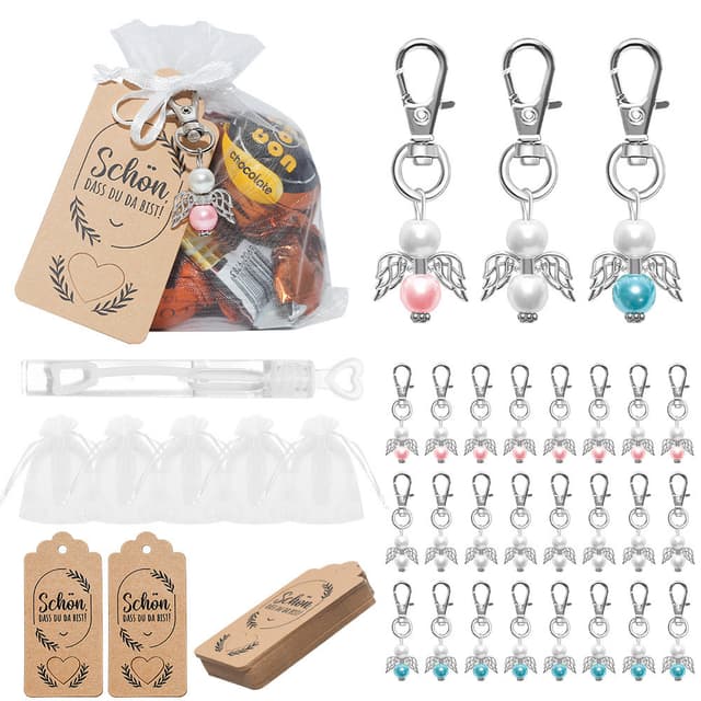 YIEUR 40 st skyddsängelhängen, silver, liten skyddsängel, gästgåvor, bröllop, dop, 4 cm, skyddsängel, hänge, pärlängel, formning, födelsedag, handgjord present för gäster