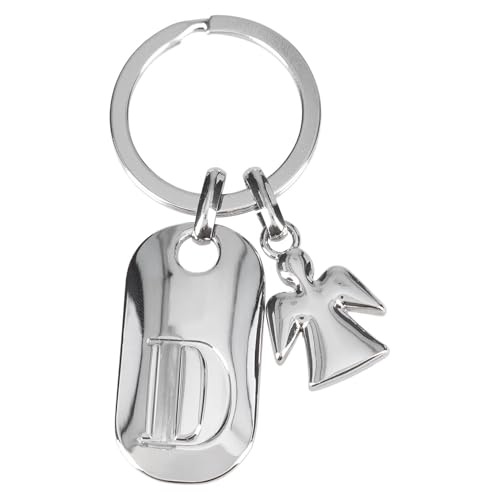 Depesche 11800-005 silvernyckelring med bokstav D och skyddsängel, zinklegering, inkl. färgad sammetspåse, silver, Einheitsgröße