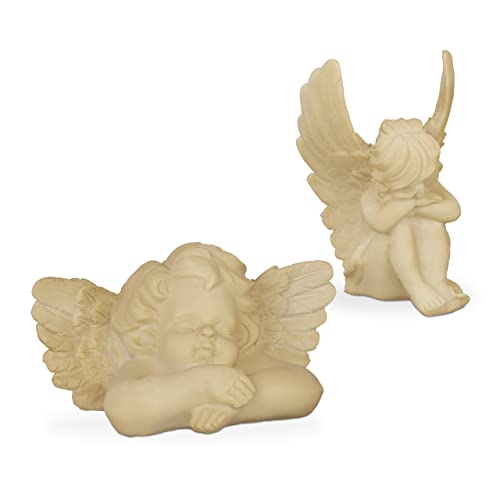 Relaxdays Gravgel uppsättning av 2, ängfigur, vädertålig, frostsäker, grävsmycke, skyddsängel, konststen, kräm