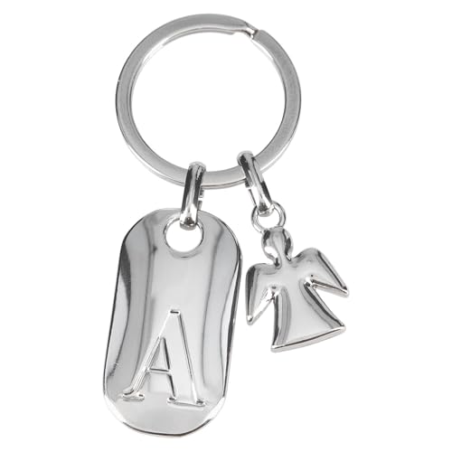Depesche 11800-001 silvernyckelring med bokstav A och skyddsängel, zinklegering, inkl. färgad sammetspåse, silver, Einheitsgröße