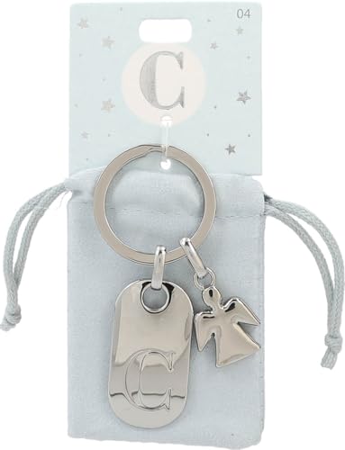 Depesche 11800-004 silvernyckelring med bokstav C och skyddsängel, zinklegering, inkl. färgad sammetspåse, silver, Einheitsgröße