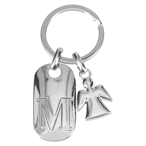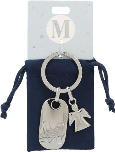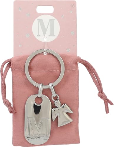 Depesche 11800-015 silvernyckelring med bokstav M och skyddsängel, zinklegering, inkl. färgad sammetspåse, silver, Einheitsgröße