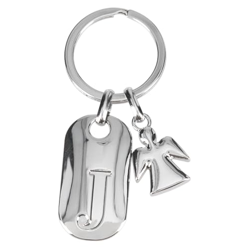 Depesche 11800-011 silvernyckelring med bokstav J och skyddsängel, zinklegering, inkl. färgad sammetspåse, silver, Einheitsgröße