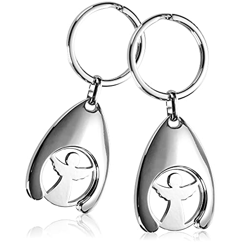 COM-FOUR® 2x nyckelring skyddsängel med kundvagn chip, ängel med avtagbar shopping chip för kundvagnen (02 stycken - skyddsängel)