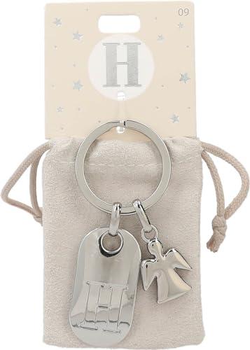 Depesche 11800-009 silvernyckelring med bokstav H och skyddsängel, zinklegering, inkl. färgad sammetspåse, silver, Einheitsgröße