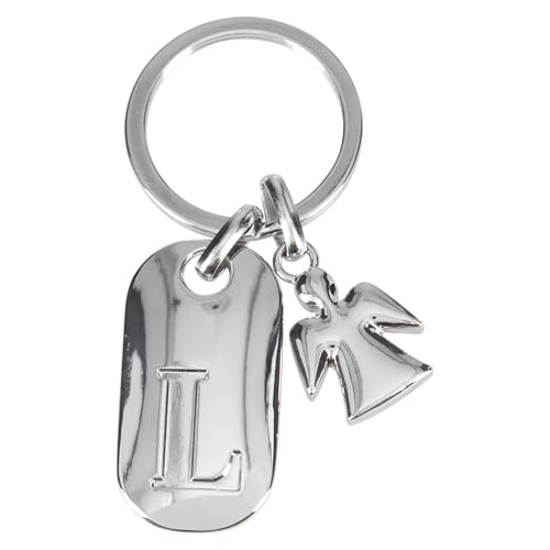 Depesche 11800-014 silvernyckelring med bokstav L och skyddsängel, zinklegering, inkl. färgad sammetspåse, silver, Einheitsgröße