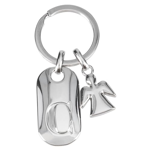 Depesche 11800-018 silvernyckelring med bokstaven O och skyddsängel, zinklegering, inkl. färgad sammetspåse, silver, Einheitsgröße