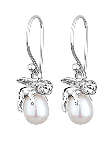 Elli örhängen damer öronhängare skyddsängel hänge elegant med sötvattensodlade pärlor i 925 sterling silver, Sterlingsilver, Pärla