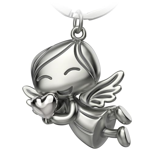 FABACH skyddsängel nyckelring Lucky med hjärta – ängel lyckobringare nyckelring kärlek – present skyddsängel lyckobringare – ängel med hjärta som presentidé för flickvän, silver, 1, Modern
