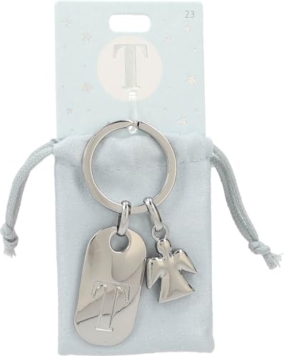 Depesche silver zinklegering bokstav T skyddsängel nyckelring 11800-023 – gratis färgad sammetspåse, silver, standardstorlek, SILVER, En storlek