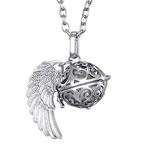 Morella dam skyddsängel halsband i rostfritt stål 70 cm med hänge Änglavingar och ljudkula zirkonia i smyckespåse