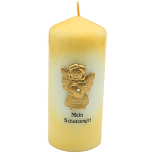Skyddande ängelljus, blockljus, bordsljus, dekorationsljus, dekorativt ljus, dopljus, formljus med gyllene skyddsängel och inskription My skyddsängel, i creme, H/Ø: 15 x 6 cm.