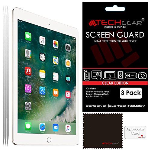 TECHGEAR 3 Stycken Skärmskydd för iPad 9,7 Tum (2018 och 2017) - Ultratydlig Skyddsfilm Med Rengöringsduk och Applikationskort