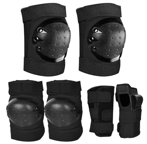 6-i-1 skyddsset för barn, knäskydd, armbågsskydd och justerbara handleder, säkerhetsutrustning för rullskridskor, skateboard, skateboard, cykel, perfekt för pojkar och flickor (svart, M)