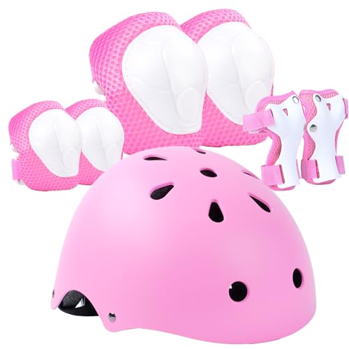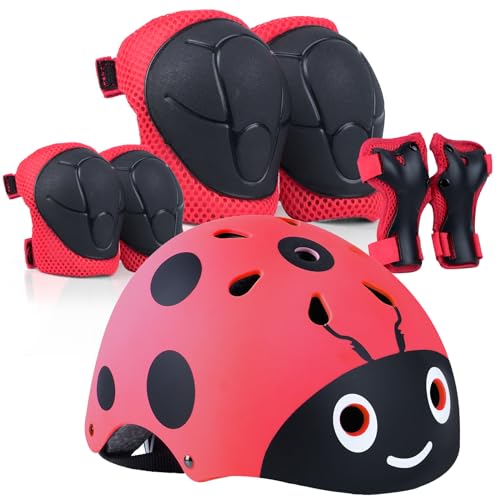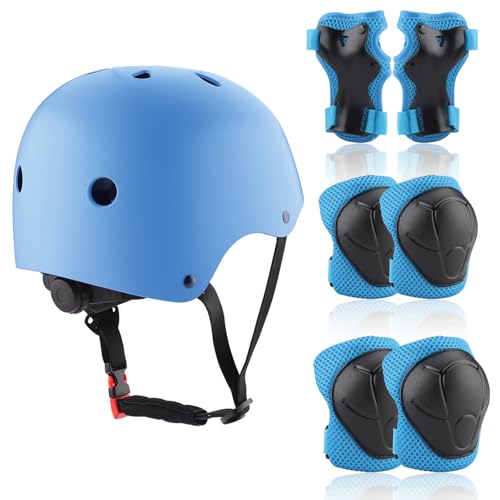 LANOVAGEAR Barnhjälm med knäskydd, armbågsskydd, handledsskydd, skyddsset barnhjälm 7 i 1för Barn, tonåringar, vuxen, för skateboard, cykling, skoter, rullskridskor, cykel