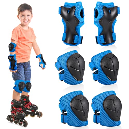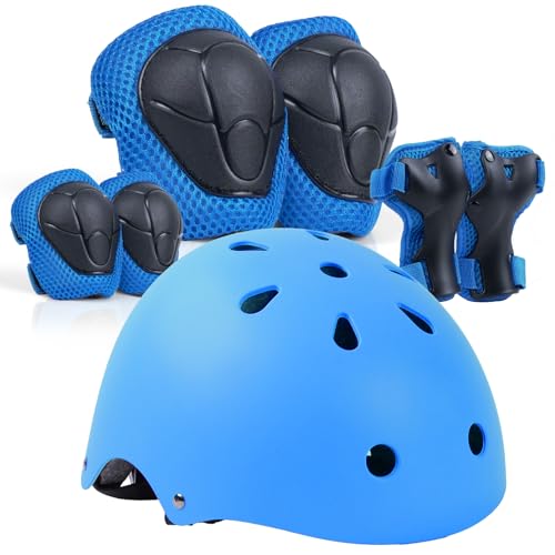 ZWOOS Knäskydd för barn med hjälm, skyddsset för barn 3–10 år (blå)