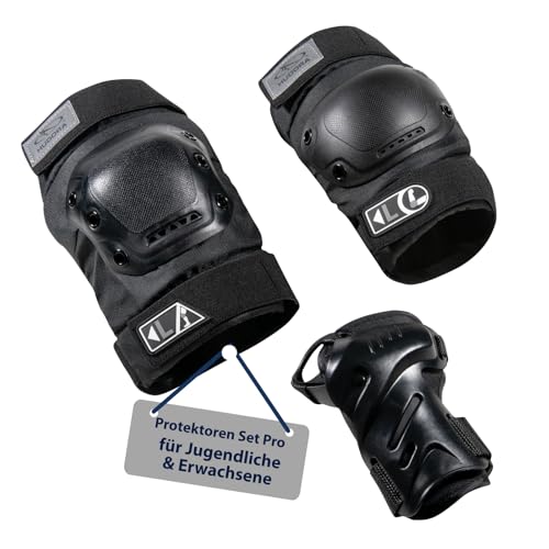 HUDORA skyddsset Pro – set med svarta knäskydd, hand- och armbågsskydd för barn och vuxna – ledskydd perfekt för inliner, rullskor, skateboard och skoter – storlek L