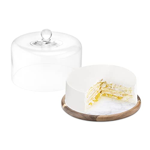 Navaris Tårtställ med lock - marmor- och träbricka med klart glaslock - skyltställ tårtor cupcakes 28 x 19,3 cm