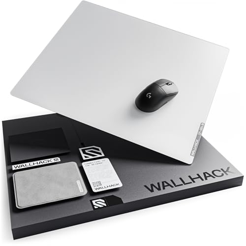Wallhack 4.0 Glas Gaming Musmatta - Professionell Esport-musmatta med specialyta för högsta hastighet och kontroll, stor härdad glasmusmatta med silikonbas - (SkyPAD White, XL 43cm x 49cm)