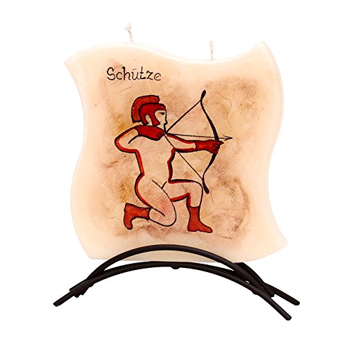 Dekohelden24 Stjärntecken Skytten – högkvalitativt platt ljus med metallstativ, 16 x 16 cm